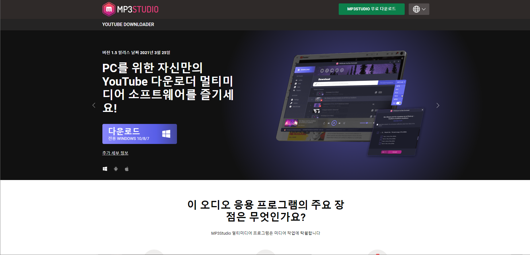 좋은 질의 멀티미디어 프로그램을 원한다면 저희의 강력한 MP3Studio 어플리케이션을 이용하세요. 24 시간 빠르고, 간단하며, 편리합니다!